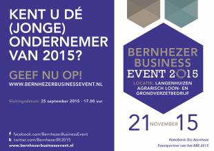 Ondernemersfeest voor en door ondernemers Het Bernhezer Business Event is al ruim tien jaar een gerespecteerd event in de gemeente Bernheze, waarbij de Ondernemer van het Jaar en Jonge Ondernemer van het Jaar verkozen wordt. Dit jaar ligt de regie in handen van een aantal enthousiaste ondernemers uit de gemeente Bernheze.